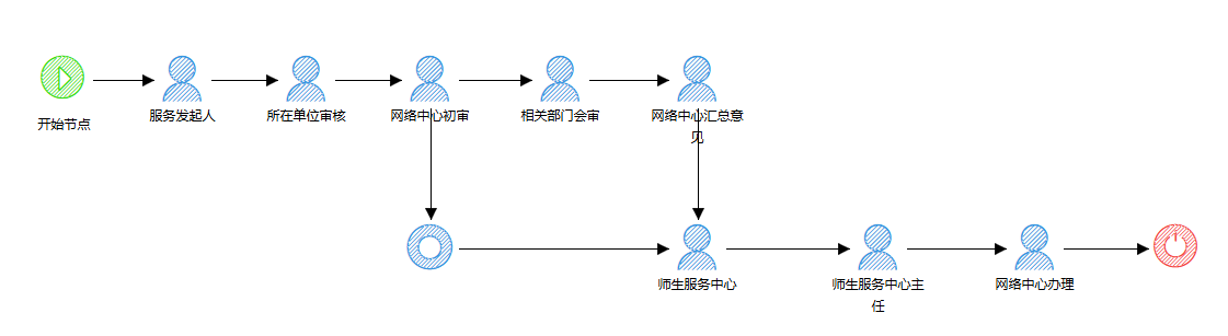 服务描述:网上办事大厅的新服务流程经业务部门测试通过后,由该服务事项的主负责业务部门提起上线申请,需经相关业务部门会审,经校办师生服务中心管理办公室审批通过后,网络与信息化办公室根据版本安排情况来执行上线。