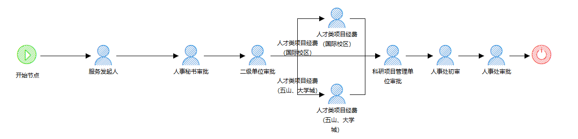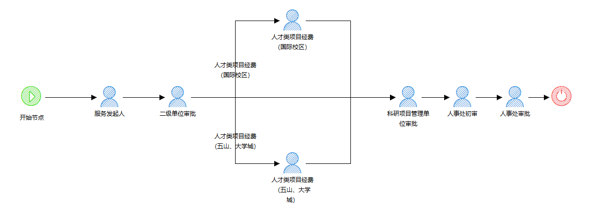 服务描述:本服务为各二级单位的科研项目负责人提供线上申请使用科研经费聘用科研助理的通道。实现从申请、所在二级单位审核、科研项目管理单位审核到人事处审批的全流程线上化管理。